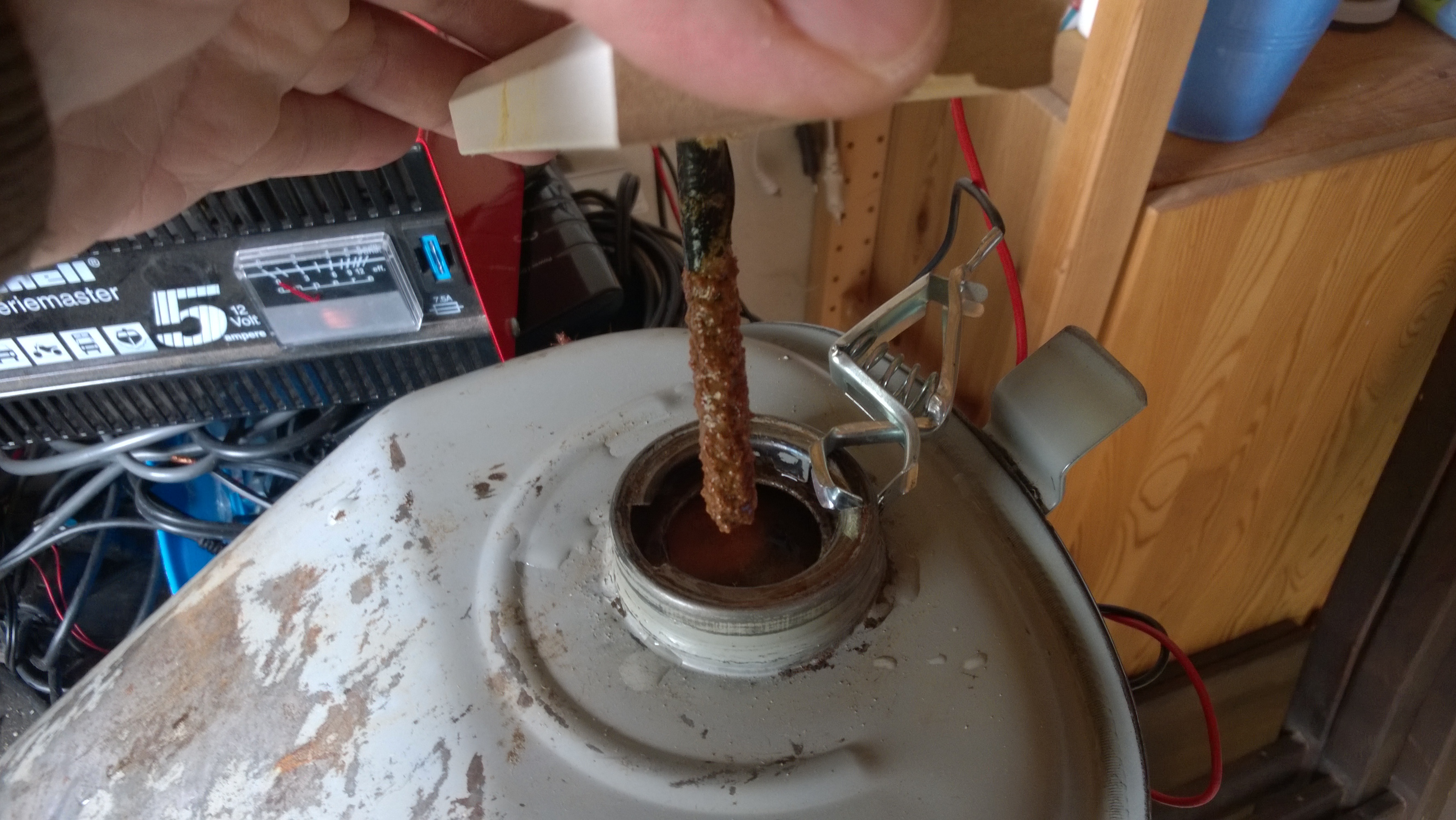 WP_20150728_008[1]        Der Rost lagert sich an der Kathode (Pluspol) ab.