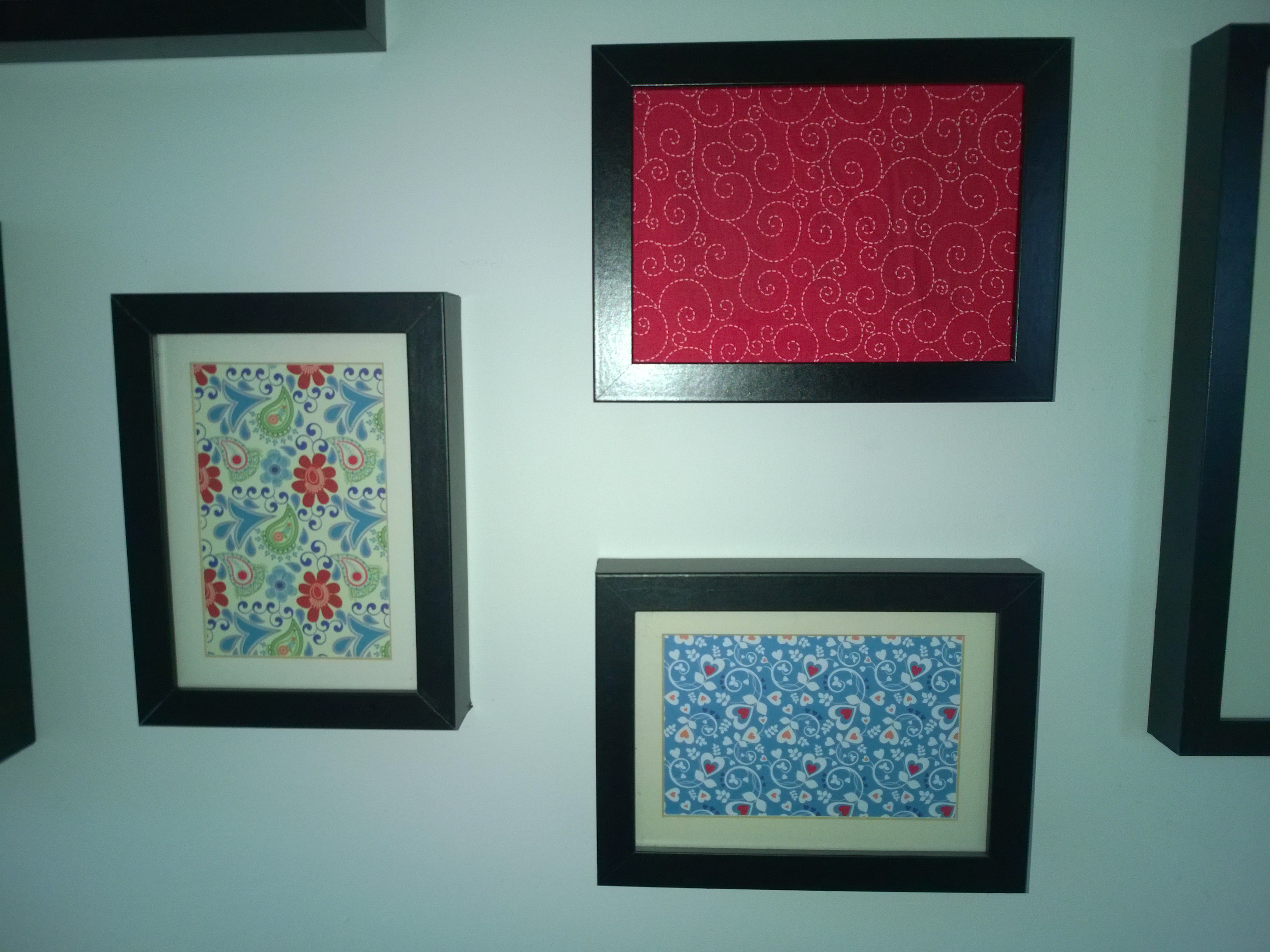 Das Ding hängt jetzt im Flur zwischen vielen anderen Bilderrahmen. Die Bedienung erfolgt von vorn. Die Taster für An/Aus, Next und Prev befinden sich direkt hinter der Stoffabdeckung.