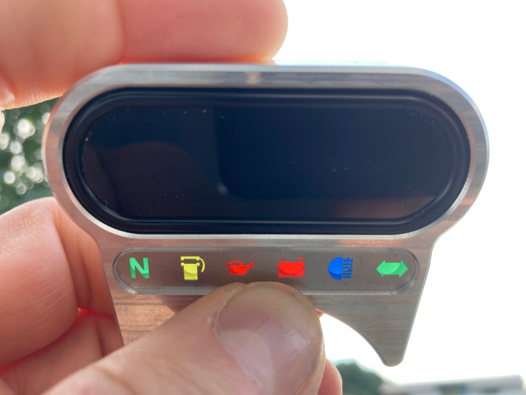 Die beiden Knöpfe dienen einmal der Rückstellung der Tageskilometer und zur Aktivierung eines zweiten Bildschirmes mit verschiedenen Parametern zur Überwachung des Systems.