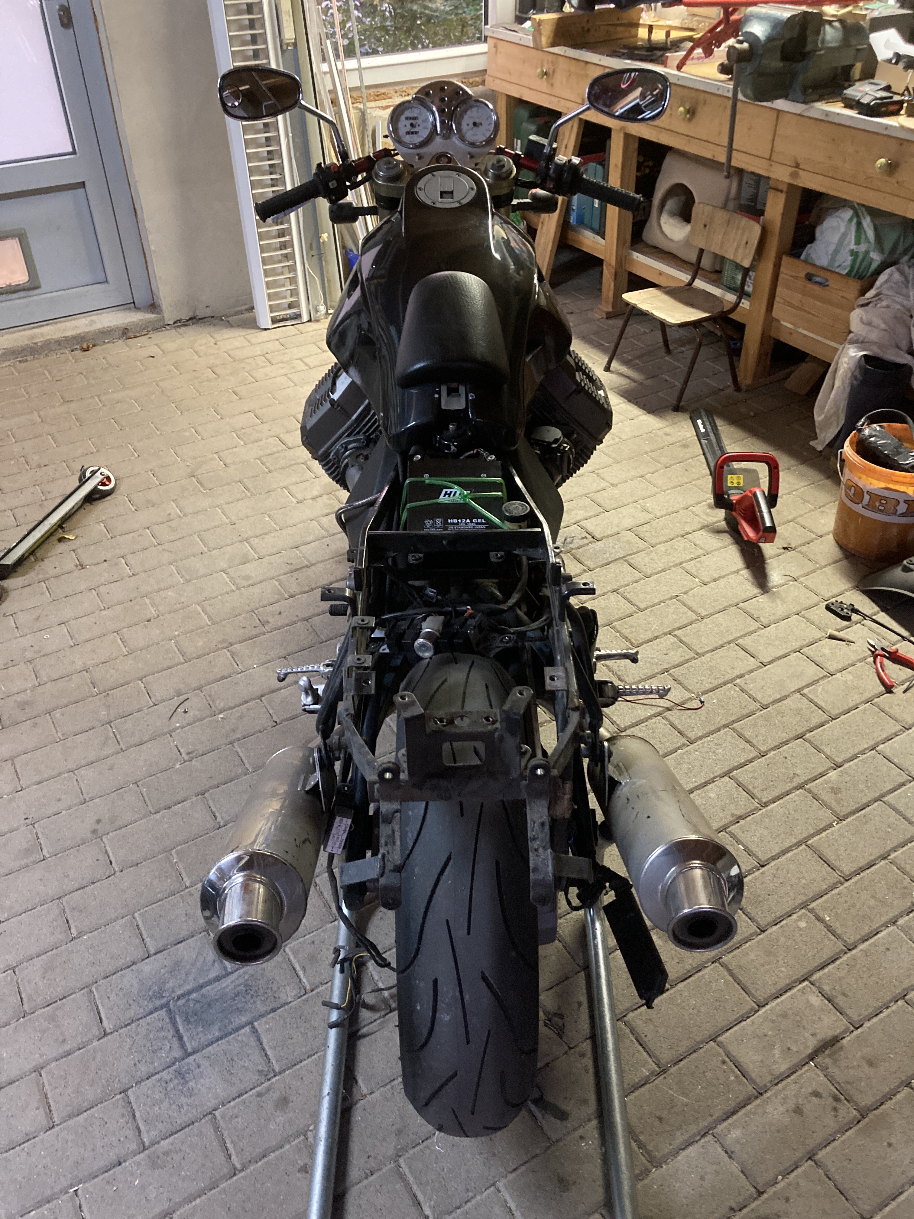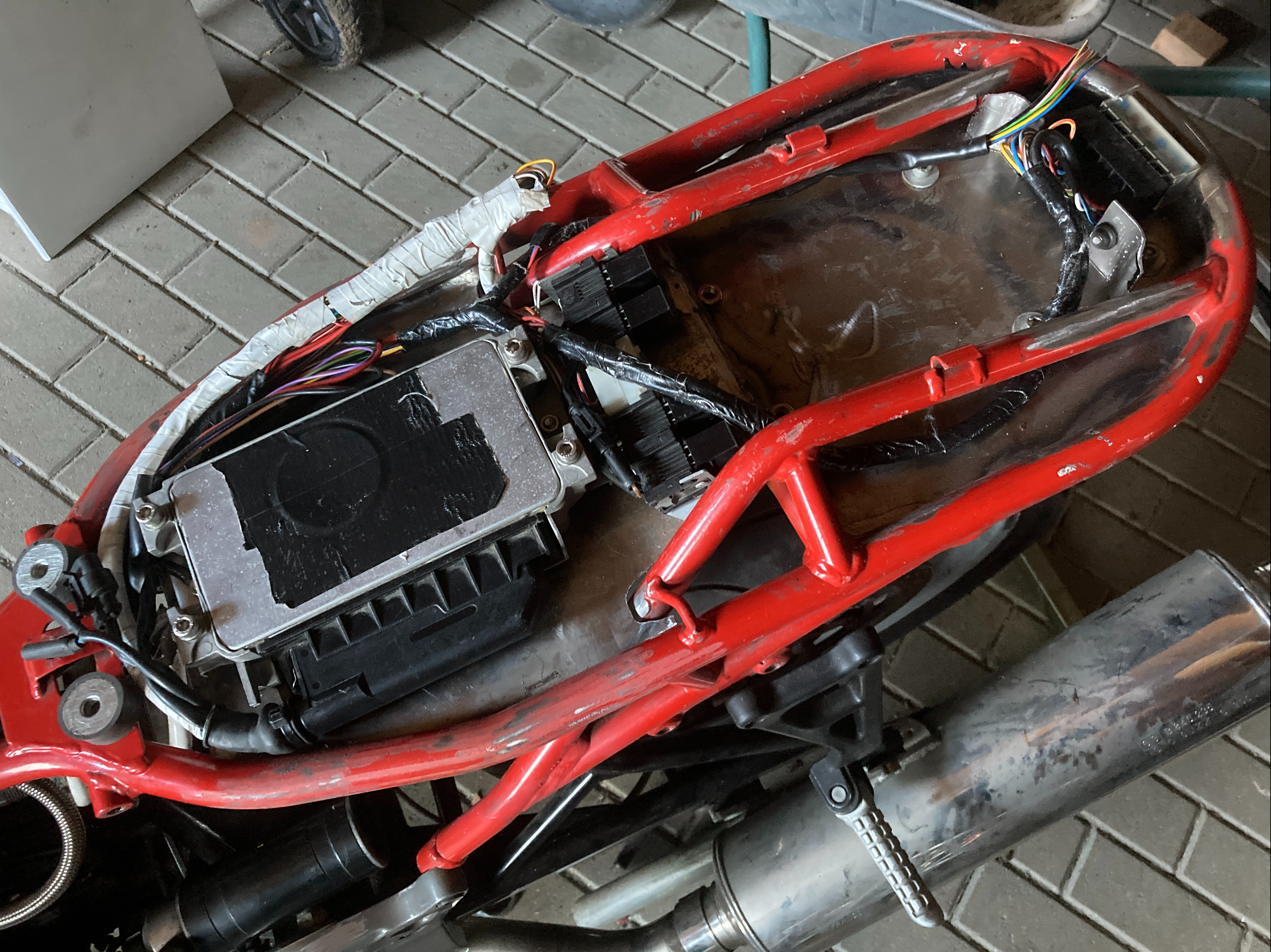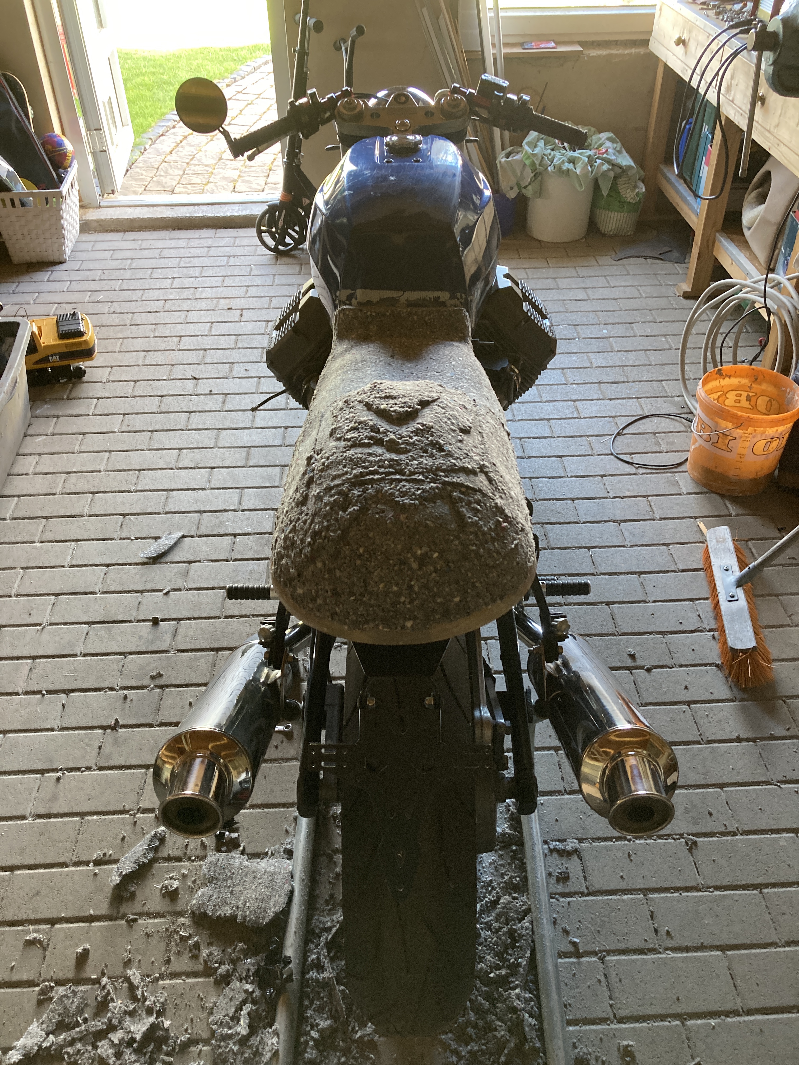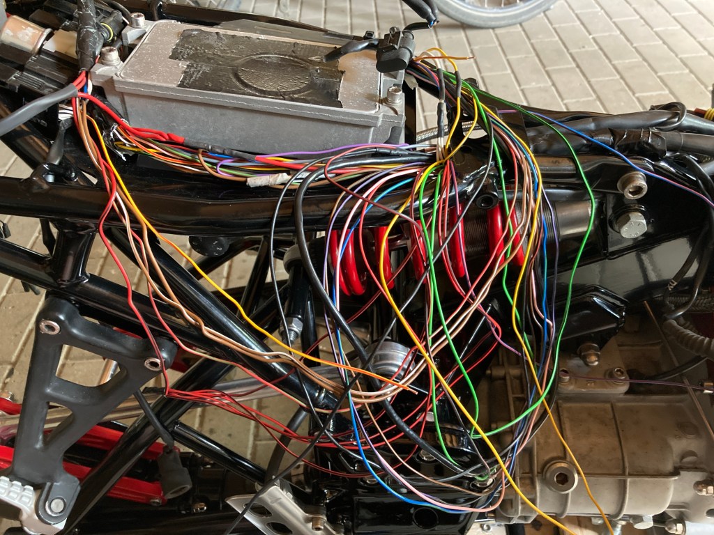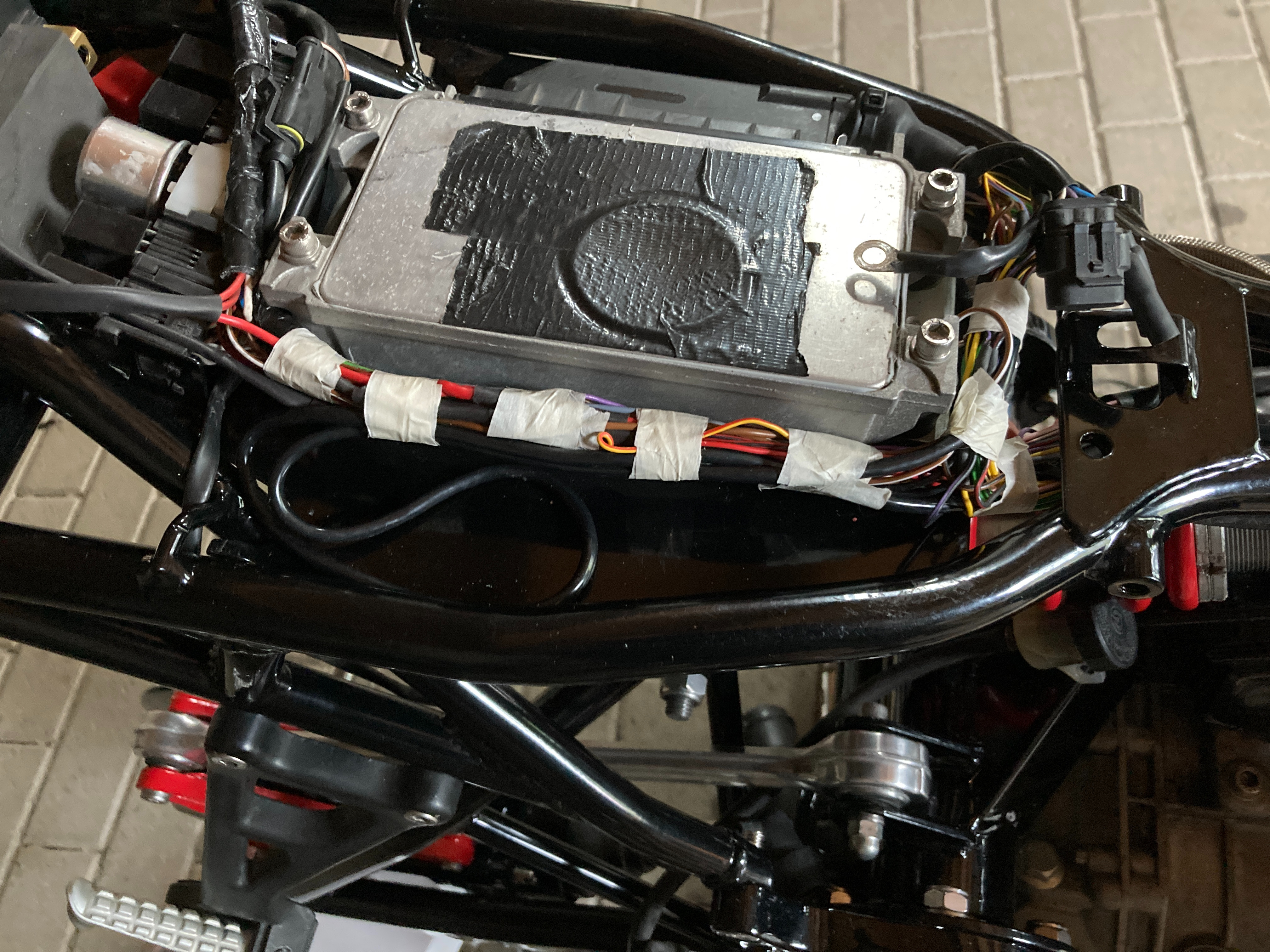 Heute habe ich endlich Zeit gefunden, die notwendigen Anschlüsse für den Datenlogger am Motorrad anzuschließen. Drosselklappenstellung und Lambdawert funktionieren. Die Drehzahl muss noch etwas warten. Erst muss der Tank noch von innen versiegelt werden. Leider ist es noch zu kalt in der Garage. Das Harz härtet bei 20°C ca. 7-8 Tage aus. Bei den aktuellen Temperaturen dauert das wohl eine Ewigkeit. Ich könnte es im Haus machen aber ich befürchte, dass es nicht besonders angenehm riechen wird.