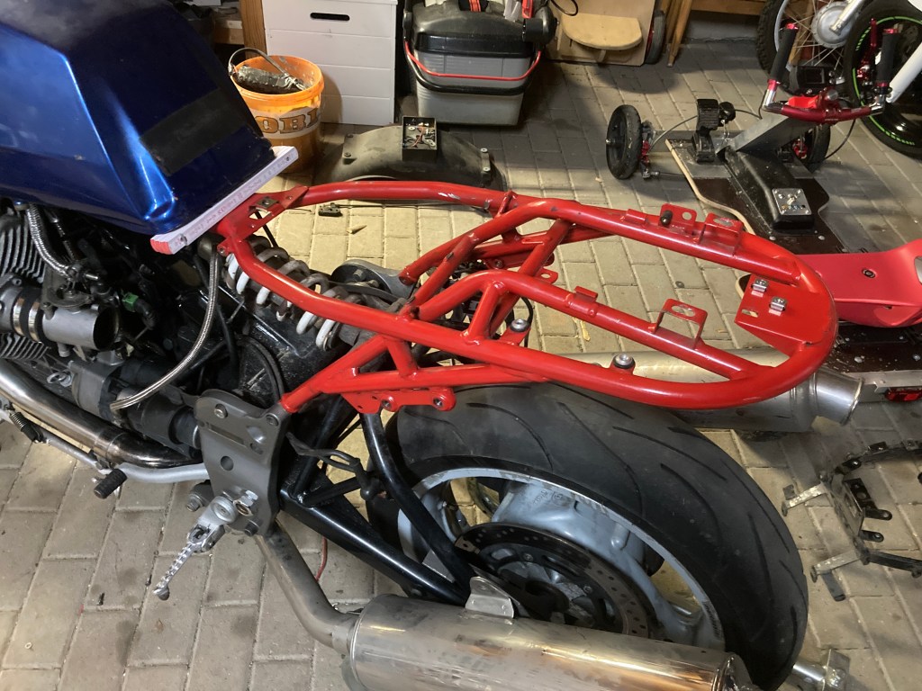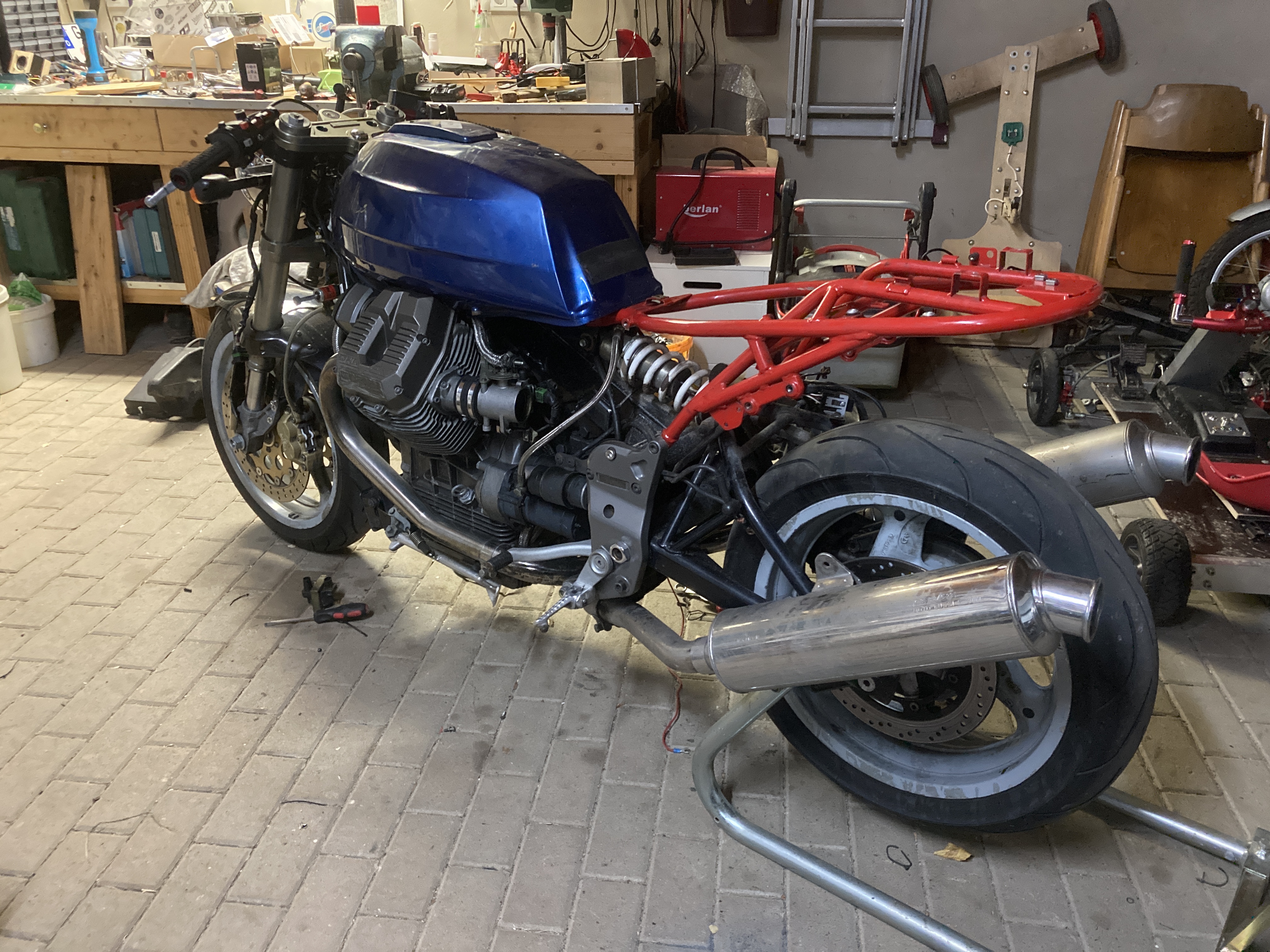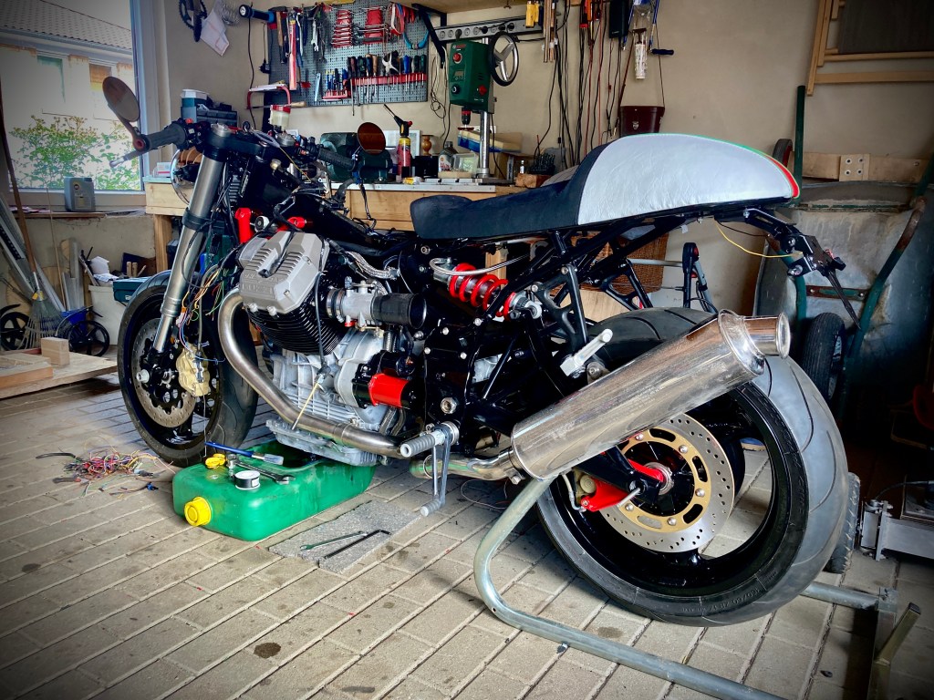Letzte Zeit hat die Guzzi am Krümmerausgang am Zylinderkopf leichte Geräusche gemacht. Das hat sich nach der letzten Fahrt extrem verschlimmert. Ich habe auf eine defekte Krümmerdichtung getippt und auch schon eine neue bestellt, aber es kommt doch noch schlimmer.
