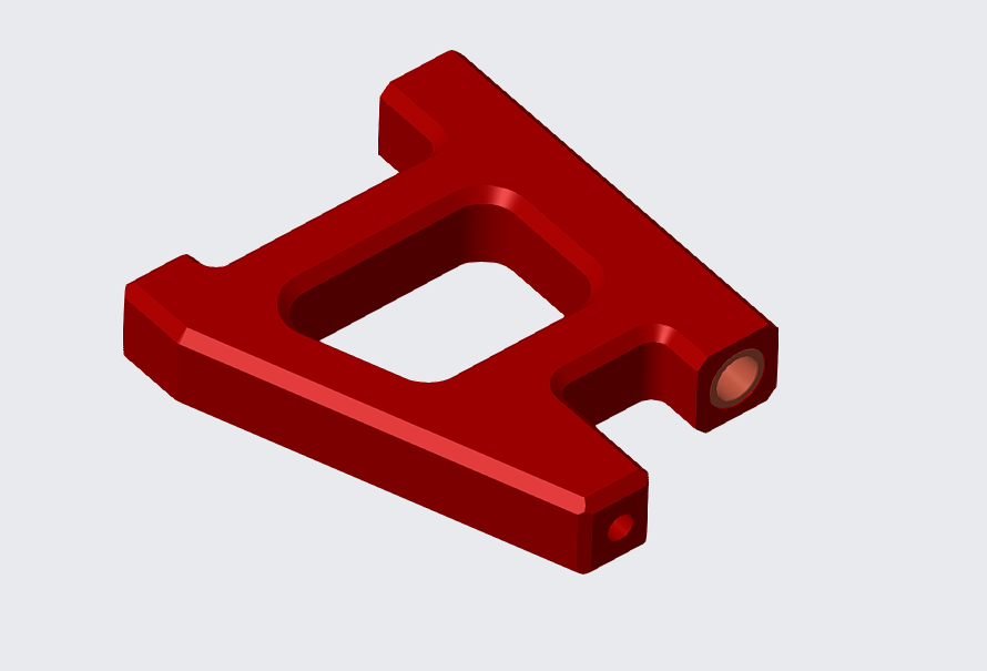 Die Vorderachse sollte auf alle Fälle schwenkbar sein, damit nicht immer ein Rad in der Luft hängt wenn der Untergrund uneben ist. Hierfür verwende ich zwei 15 mm Flanschlager K002. Der Rahmen hat eine 8mm dicke Frontplatte, an welcher die Achse für die beiden Flanschlager befestigt wird.