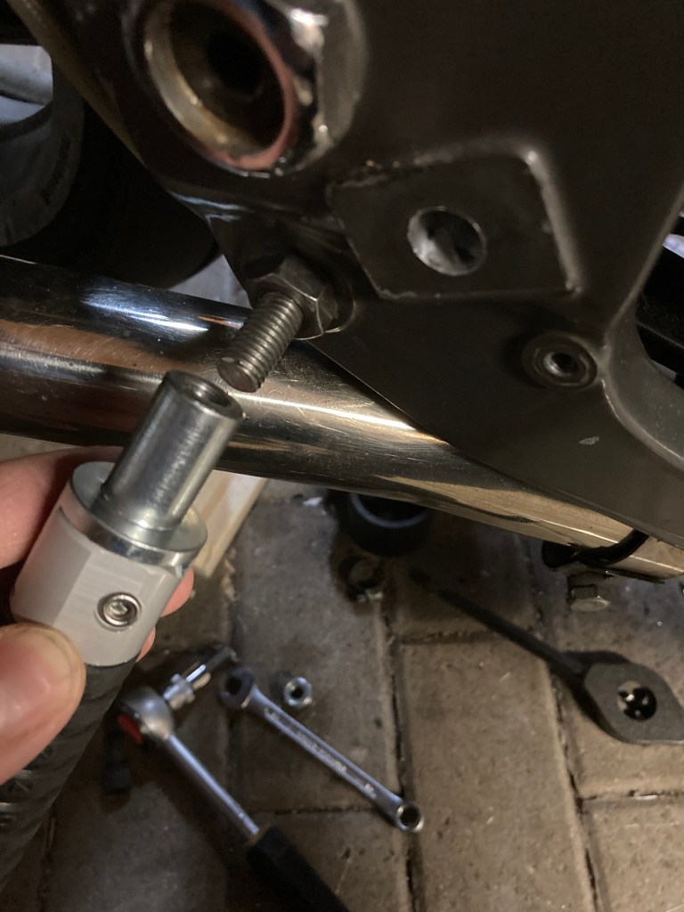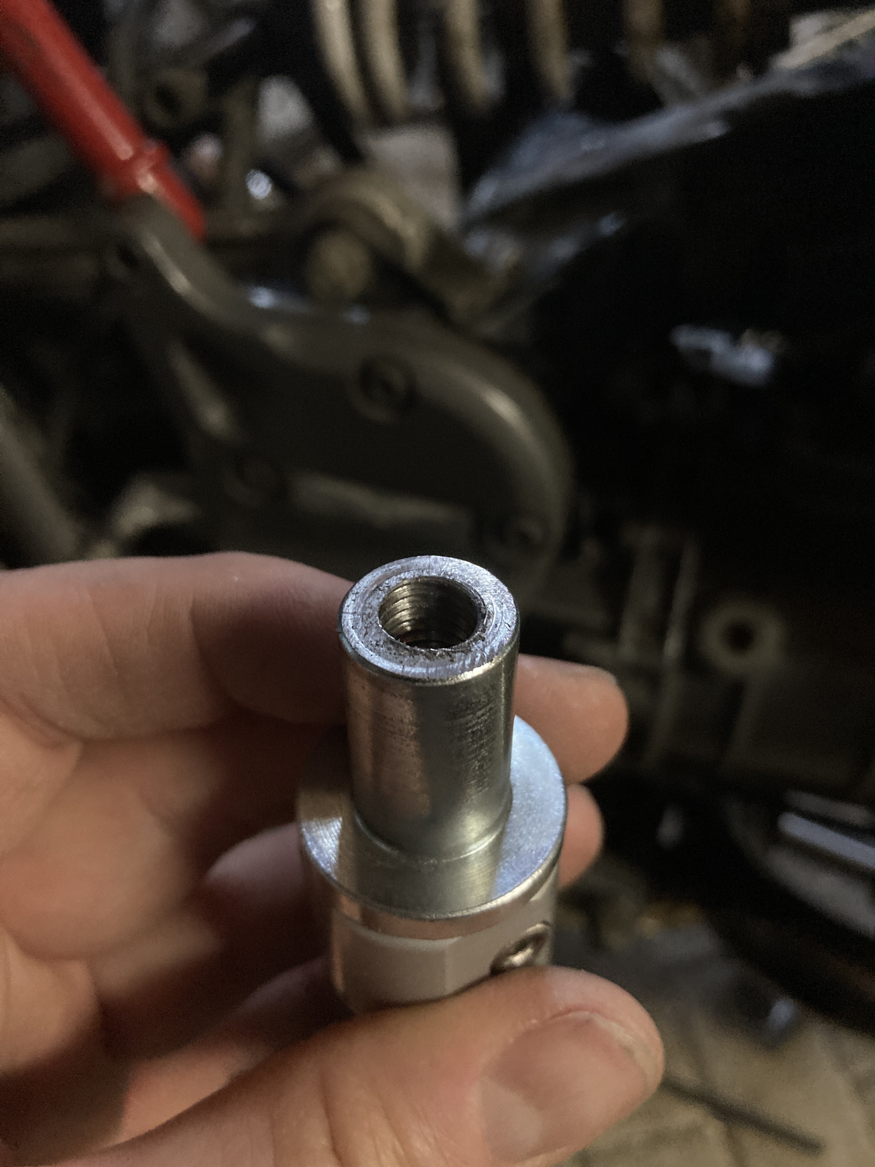 die originale Achse hier wurde durch besagte Hülse ersetzt