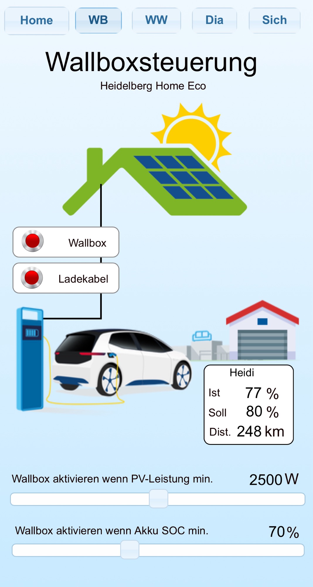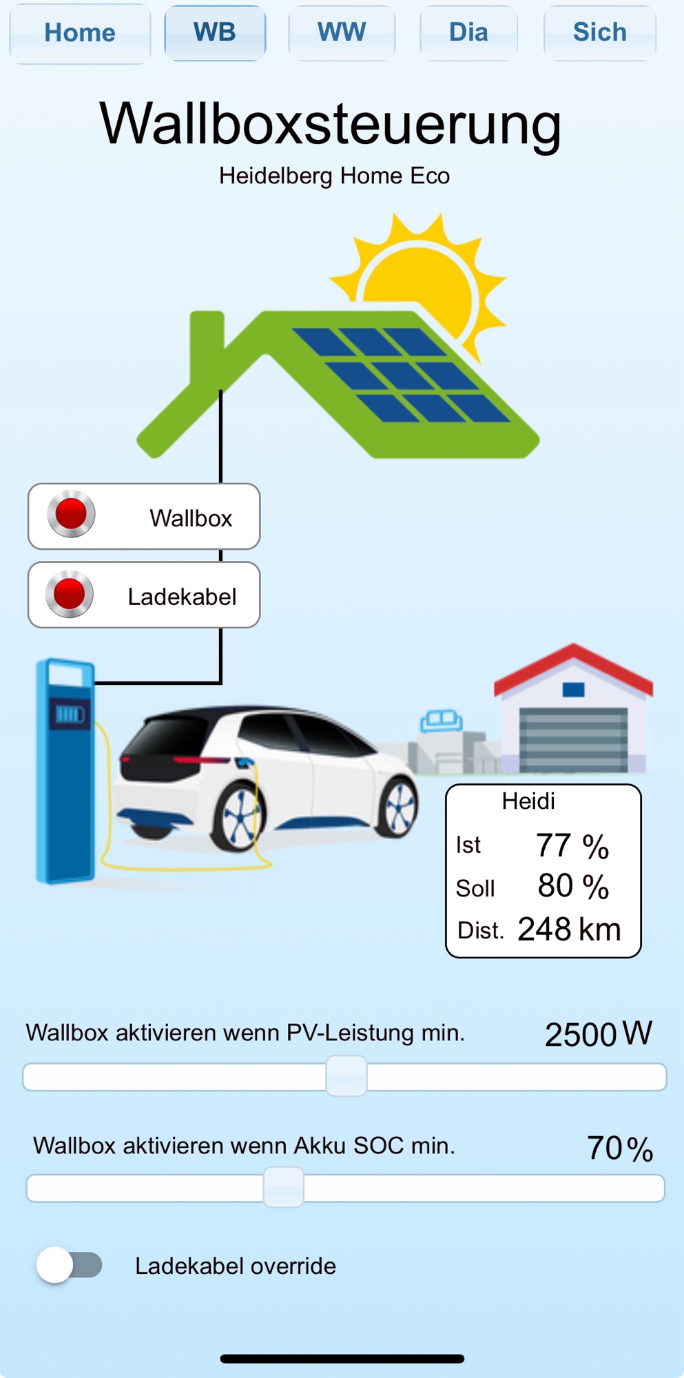 Fangen wir bei der Wallbox an. Wenn man die Heidelberg Home Eco öffnet, sieht das ganze so aus.