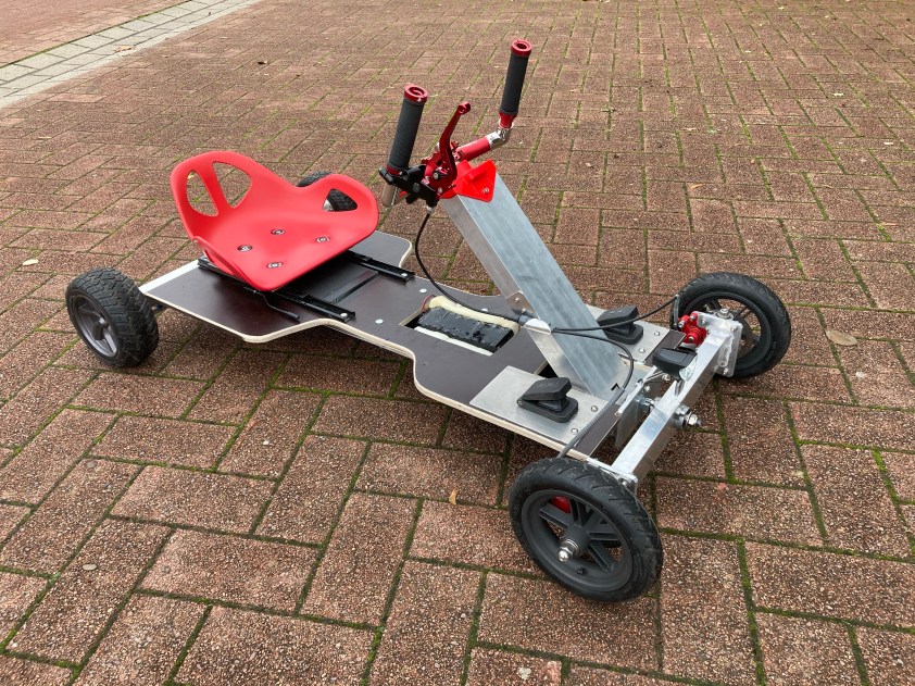 Nach der Seifenkiste mit Akkuschrauber als Antrieb gehe ich nun einen Schritt weiter und baue mal was richtiges. Ein Kart mit zwei BLDC-Motoren aus einem Hoverboard als Antrieb und gehackter Hoverboard Firmware auf der originalen Steuerplatine.