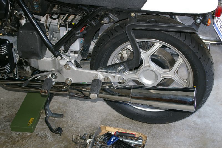 Eine meiner ersten Amtshandlungen an der Skorpion war der Kauf und Anbau eines anderen Auspuffes. Der originale Auspuff ist riesig und auch sehr schwer. Die Firma GPR aus Italien stellt sehr schöne Auspufftöpfe auch für MZ her. Leider gibt es die nur für die Baghira mit ABE. Da die Baghira und die Skorpion aber den gleichen Motor haben, sollte es auch an der Skorpion funktionieren, und wie er das tut. Der Motor hat gefühlt im mittleren Drehzahlbereich mehr Drehmoment.