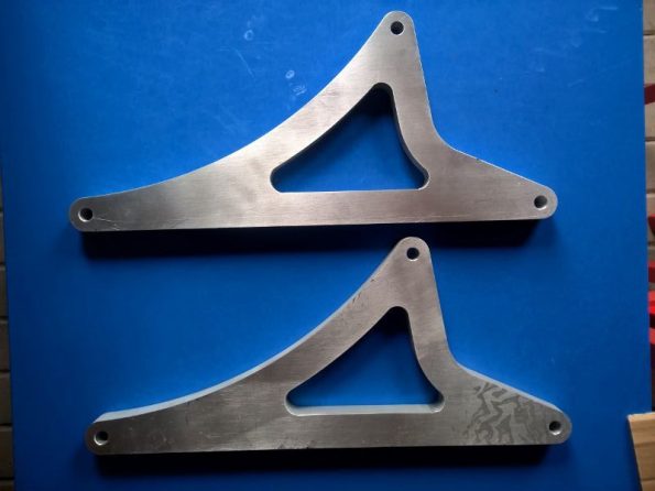 Ursprünglich war es mein Plan den Heckrahmen komplett zu eliminieren und durch zwei gefräste Aluminiumhalter zu ersetzen. Nach Rücksprache mit dem TÜV-Mann meines Vetrauens haben wir uns darauf geeinigt, den Heckrahmen aus Sicherheitsgründen wieder zu verwenden und geändert beizubehalten. Ich möchte die Aluhalter trotzdem verwenden auch wenn sie nur noch als Designelement zu sehen sind. Das wird sicher gut aussehen.