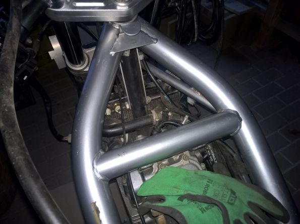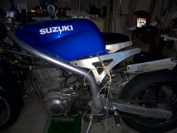 Ich finde ein Motorrad auseinander zu bauen geht immer sehr schnell von der Hand. Das Öl ist abgelassen die Verkleidung, die Instrumente, der Heckrahmen und der Spritzschutz abgebaut.