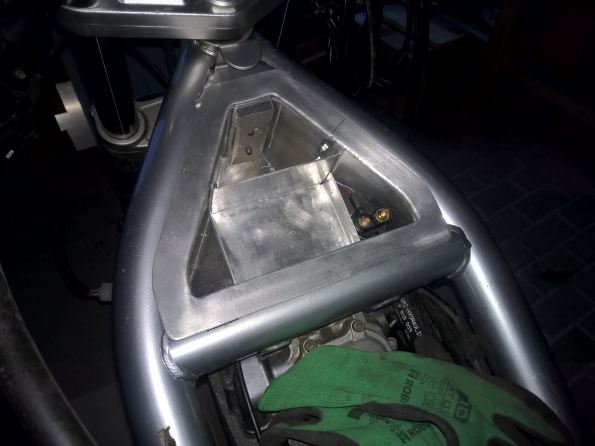 In der Elektrobox wird letztendlich die m-unit, die Batterie, die Zündung, das Starterelais, die Sicherung und etwas Kabelei untergebracht sein.