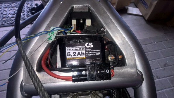 Als Batterie kommt ein LiFePo Akku von CS-Batteries zum Einsatz. Die Kapazität beträgt 5,2Ah. Der maximale Startstrom entspricht mit 312A dem einer 14Ah Bleibatterie. Natürlich stehen bei niedrigen Temperaturen weniger zur Verfügung, aber ich denke es sollte funktionieren.