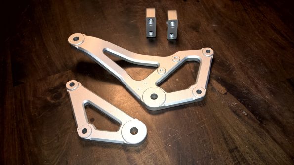 Die originalen Fußrasten sind ebenso unschön wie die entsprechenden Halter. Aus diesem Grund habe ich mich entschieden die Fußrastenhalter neu zu machen und Fußrasten von Paolo Tarrozzi zu verwenden. Die Paolos gibt es bei Kickstarter für 157,00€.